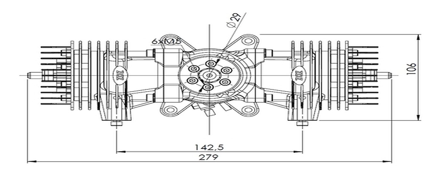 Displacement:140ccm Weight: 2630g without ignition/ 3870grams with el. starter RPM range: 1000-8500RPM Ignition: Processor. controlled 4,8-7V Fuel mixture N95+rec.oil: 1:35 Recomm twinblade props: 28x12, 29x11,29x12, 30x10 Recomm. threeblade props: 27x12
